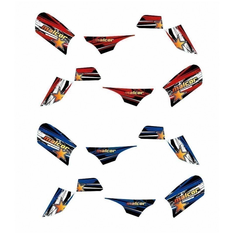 Adhesivos exclusivos MALCOR para mini quads infantiles de 6 pulgadas. Elegir entre rojo o azul en el desplegable.