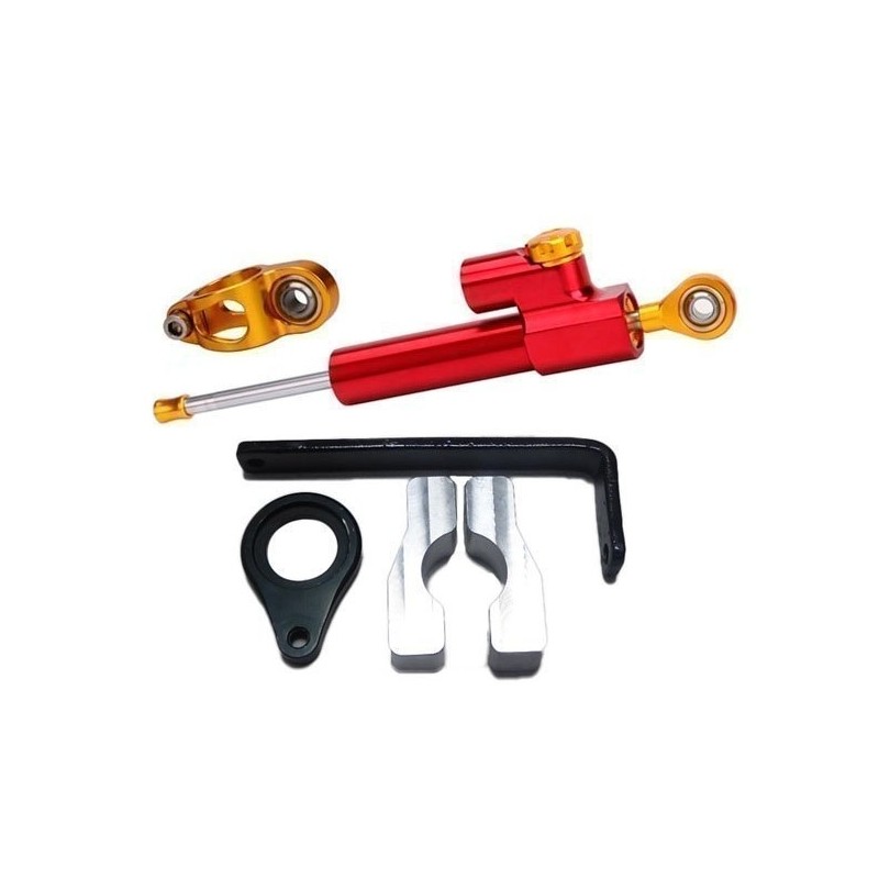 Amortiguador de direccion regulable para pit bikes. El unico modelo especifico para montar en pit bikes con total seguridad!! Fabricado para modelos con chasis tubular tipo MALCOR RACER, IMR COPA...