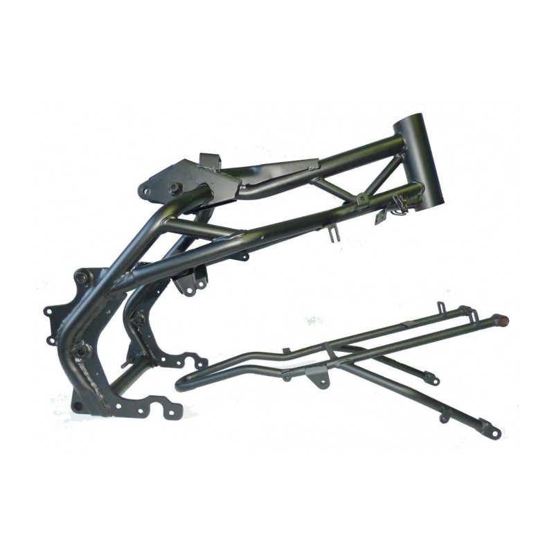 Es el mejor chasis hasta el momento en el mundo de las pit bikes, el que todos quieren imitar pero no consiguen por su medidas y cambios. Nosotros hemos hecho cambios de mejoras en el angulo de direccion, retoques en la fijacion de suspension trasera, estribos elevados y cambios esteticos.