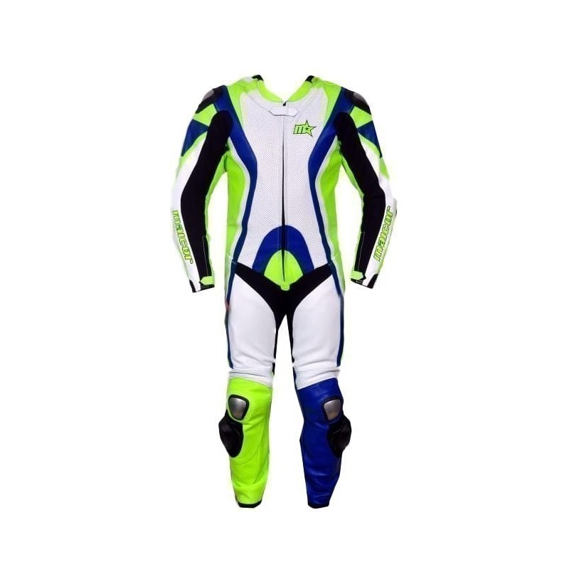 Mono de carretera de una sola pieza MALCOR. Especial mono de carretera con protecciones de titanio en hombreras, codos y rodilleras. Deslizaderas universales con vercro y chepa trasera. Guía de tallas disponibles en imágenes.