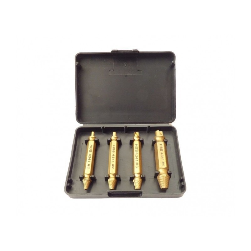 Juego de 4 extractores para tornillos rotos. Extractores de alta calidad en acero 4341.