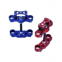 Tijas XFRONT V2 fabricadas en CNC con regulacion de eje variable en avance y retroceso para pit bikes anonizadas en color rojo. Tijas altisima calidad aluminio 6061, para manillares de 28mm, horquillas 45/48 y con una anchura de 177mm. Nueva version con doble ajuste inferior para mayor avance.