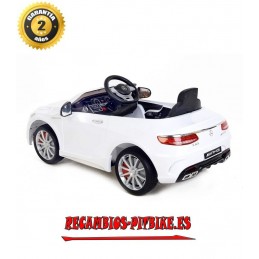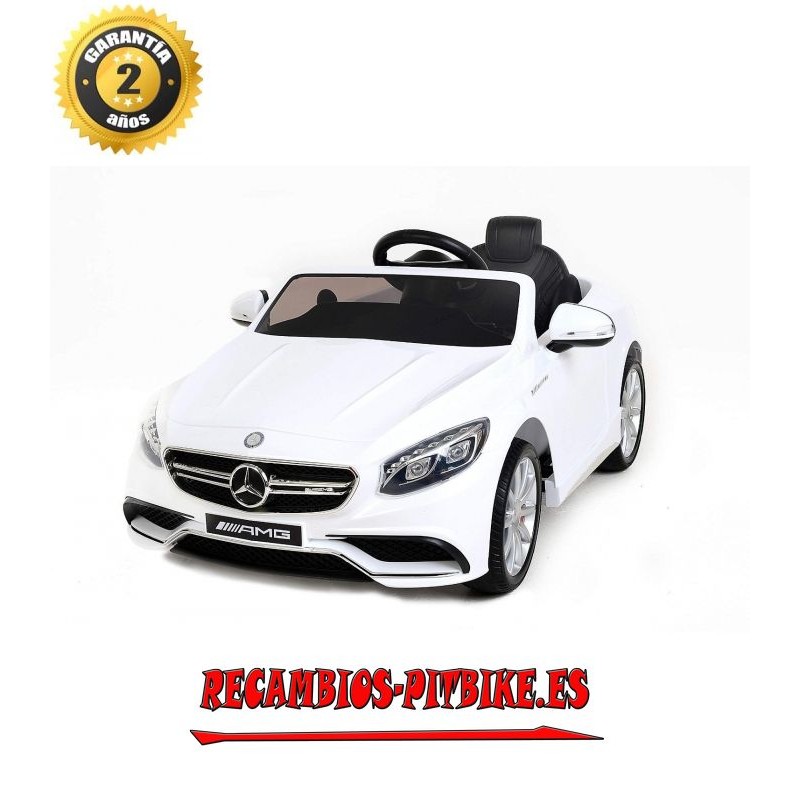 Como dejar a tu pequeño sin su Mercedes-Benz S63 AMG. Este coche electrico para niños posee LICENCIA MERCEDES, con mando a distancia 2.4ghz. El coche electrico de juguete Mercedes-Benz S63 AMG cuenta con un aspecto moderno con insignias y logotipos originales de la marca, materiales y fabricación de alta calidad. Este modelo incorpora un asiento muy cómodo para el niño. Tiene ruedas EVA suaves para conducción cómoda y durabilidad. Además también viene equipado con faros delanteros y traseros. Con botones de bocinas que reproducen música pop, puerto de conexión de un reproductor de MP3, control de volumen y efectos de sonido. Para la seguridad del niño, viene con cinturones de seguridad ajustables. Indicador de carga de la batería, con 2 unidades de motor en la ruedas traseras de 45w cada uno, 2 velocidades hacia adelante y 2 hacia atras lo que permite conducirla en todos los caminos. Para niños más pequeño: ¡opción de ajuste lento! No requiere mantenimiento adicional, excepto cargar la batería y limpiarla ocasionalmente.Conduciendo este fantástico coche electrico su hijo será el centro de atención.