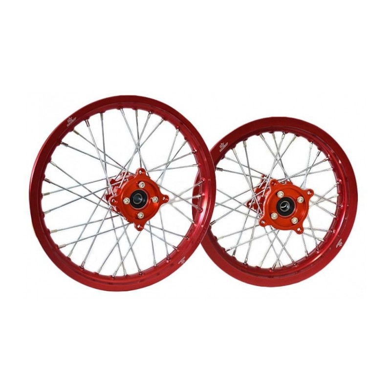 Llantas 17/14 de aluminio con buje CNC rojo para pit bike