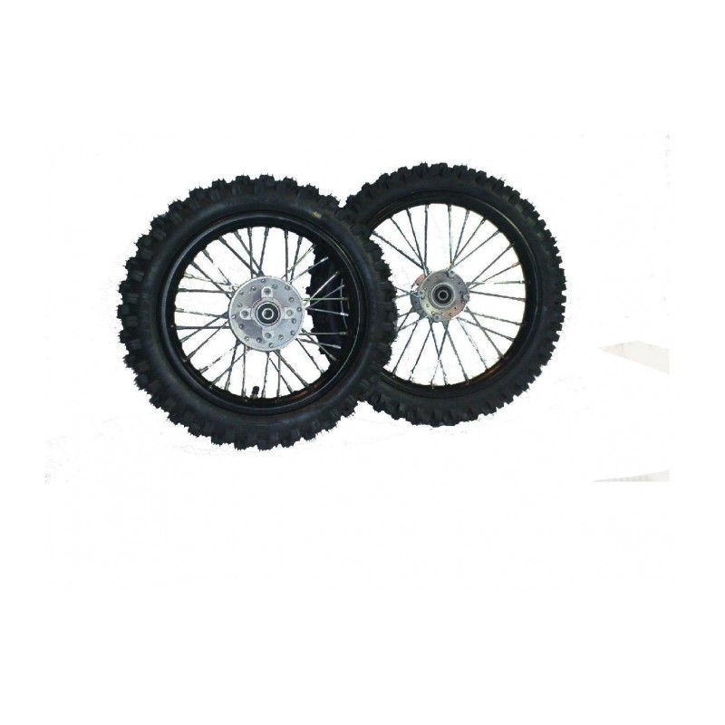Ruedas pit bike 17-14 con aro el aluminio colo azul y neumaticos de altisima calidad KENDA. Ruedas completa para convertir tu pit bike en una autentica MID SIZE.