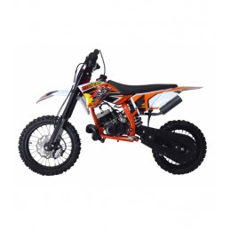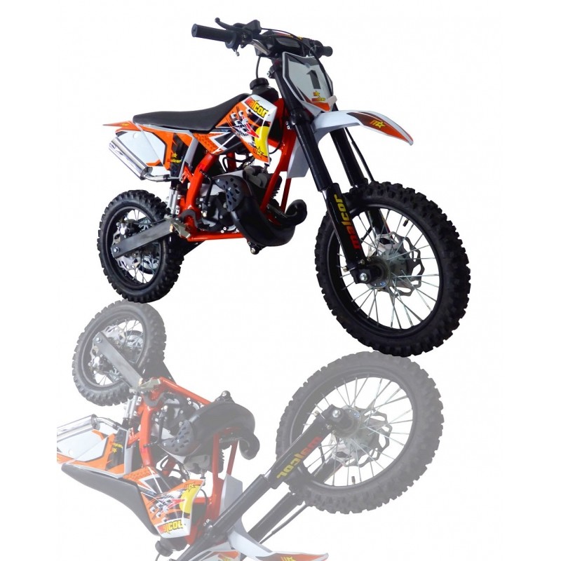 En MALCOR ya hemos conseguido lo que todos los padres buscaban para sus hijos, una minimoto de 2 tiempos bonita, de calidad y a un precio increible, y además con esta version para niños de mayor edad ya que montamos ruedas 14 delantera y 12 trasera como las pit bikes normales, con lo que podra ser usada para todas las edades sin pega alguna. Apta para niños desde 8 años con una altura de 72ctmos al asiento y 90 al manillar.
