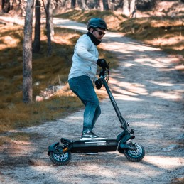Patinete eléctrico certificado con una potencia máxima de 800W 48V, batería de litio de 13.000 mAh con hasta 50 km de autonomía, ruedas de 10" neumáticas Tubeless, suspensión delantera y trasera, triple frenada, intermitentes y APP compatible: smartGyro K2 Titán.