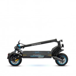 Patinete eléctrico certificado con una potencia máxima de 1000W 52V, batería de litio de 23 Ah con hasta 90 km de autonomía, ruedas de 10", suspensión delantera y trasera por elastómeros, triple frenada con frenos Hidráulicos, intermitentes: smartGyro Raptor 23Ah C