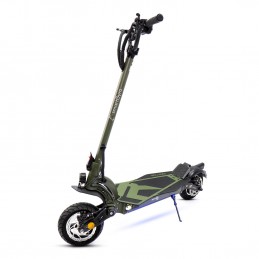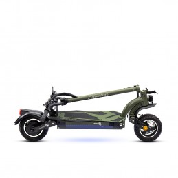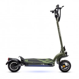 Patinete eléctrico certificado con una potencia máxima de 800W 48V, batería de litio de 13.000 mAh con hasta 50 km de autonomía, ruedas de 10" neumáticas Tubeless, suspensión delantera y trasera, triple frenada, intermitentes y APP compatible: smartGyro K2 Army.