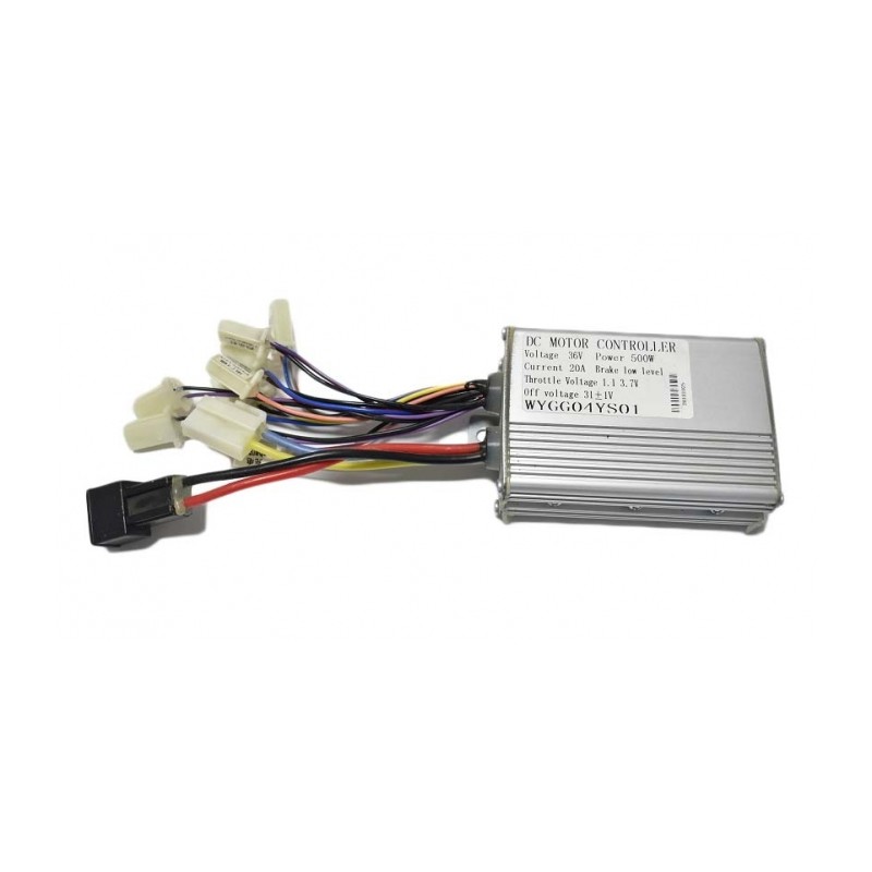Centralita para patinete o minimoto electrica de 500w 36v. Consta de 8 clavijas blancas, una para motor y una para conector a bateria.
