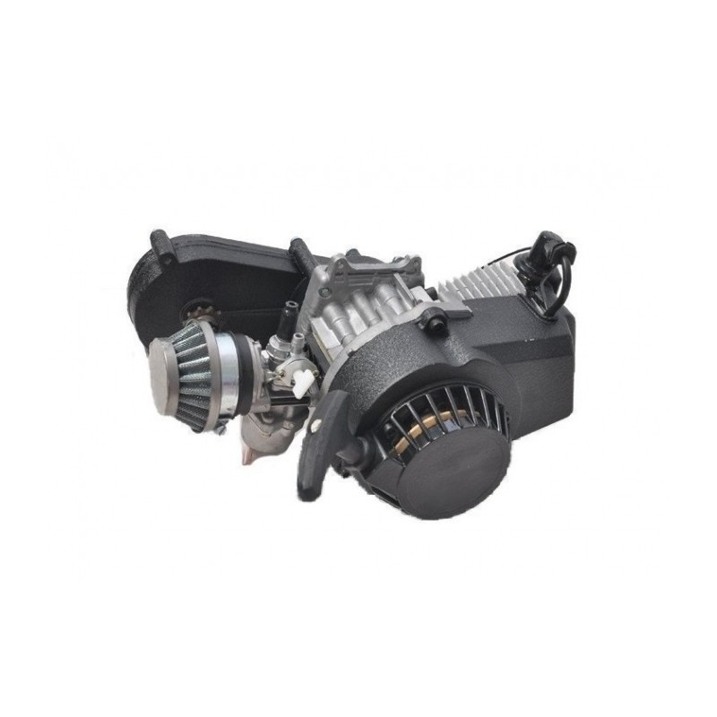 Motor de minimotos de 2 tiempos de gasolina con carburador, filtro y tirador manual incluido.