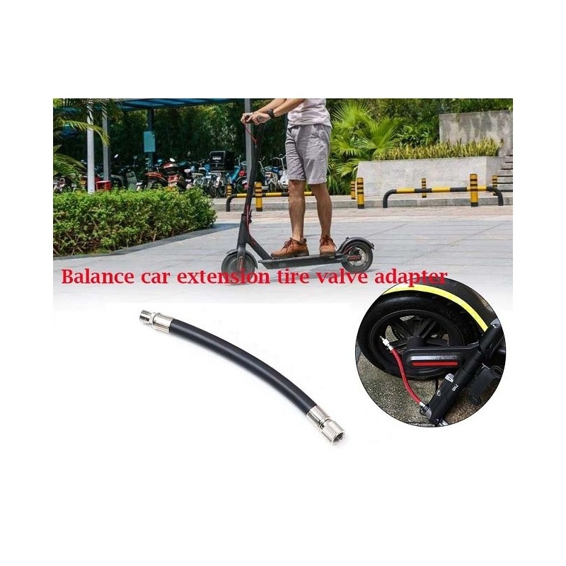 Alargador de inflado para ruedas xiaomi, replicas y todo tipo de patinetes. Hecho de metal de 100mm de longitud, es duradero y resistente a la corrosión. Facil montaje, te ayudara sin duda al llenado de la rueda de tu patinete!!