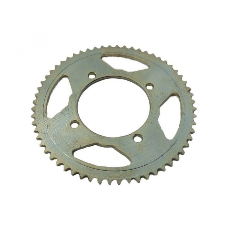 Corona para patinete malcor 350w o replicas similares. 59 dientes, paso cadena 25H. Buje interior 55mm, distancia entre tornillos digaonales 65mm